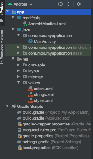 a. Project : 실제 폴더 구조. Android 뷰에서 제공하지 않는 파일을 보거나 실제 구조를 볼 때 사용한다.