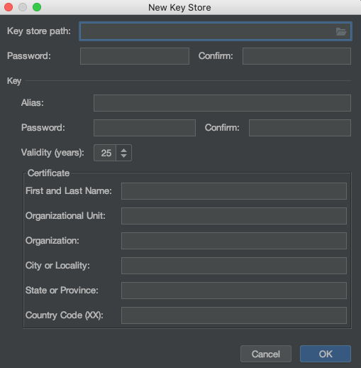 (1) Key store path : 키스토어를 저장할 경로. 만든 키를 계속 사용할 것이기 때문에 폴더를 따로 생성해 보관하길 추천.